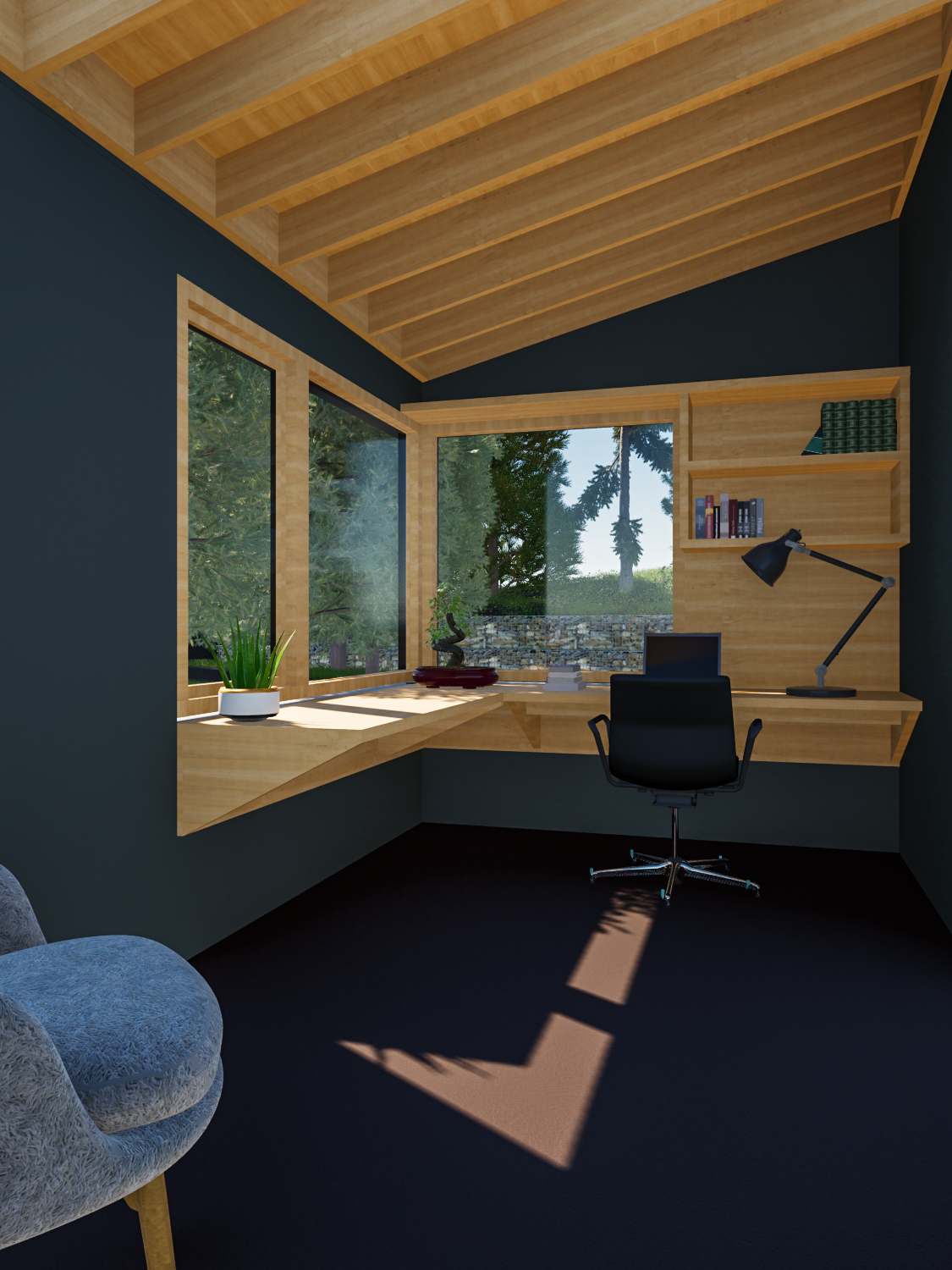 In a post-pandemic environment, the homeowners, a professional couple, experienced changing lifestyles that led to several needs and wants. They needed a much better work from home office away from their basement to suit their now hybrid jobs several days a week. They needed a new garage to replace a crumbling shed dating from the 1920s. Avid road-warrior bicycle enthusiasts, they wanted a bike repair workbench area. They wanted spaces to store their children’s scooters and various household items, host birthday parties and barbeques, have a better backyard garden and outdoor seating area.